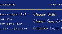 I've just added 7 new fonts to the Pixel Font Pack. The big new addition is the Glimmer font family. A Shining Force / Tactics Ogre inspired handwritten style font in 8x8 and 8x16 pixels sizes with se...